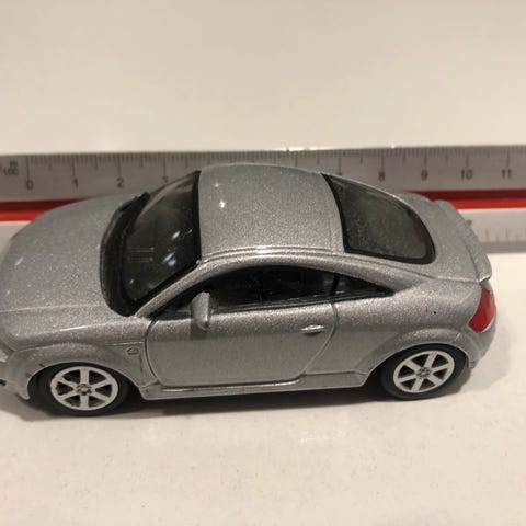 Welly Audi R8 V10 modelbil i sort farve. Modellen er detaljeret med fire hjul og er lavet til samling eller som legetøj.