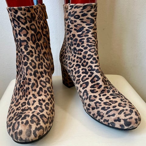 Den indvendige længde er 25 cm, hælen er 9 cm høj, plateau er 1,5 cm, selve skaftet er 9,5 cm, skaftvidde er 26 cm