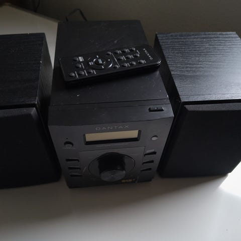 Dantax stereopakke med fjernbetjening og to højttalere. Virker som det skal