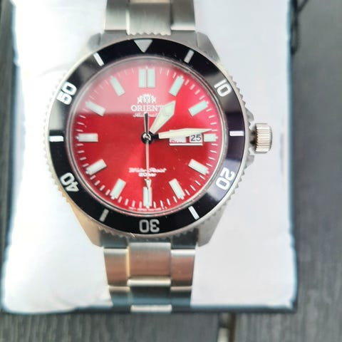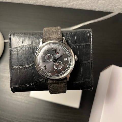 Sælger dette flotte Orient automatic ur med open-heart skive.