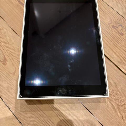 Apple iPad tablet med 32 GB lagerplads. Enhedens specifikationer inkluderer en skærm til touch-input og understøttelse af flere sprog. Leveres med beskyttende cover.