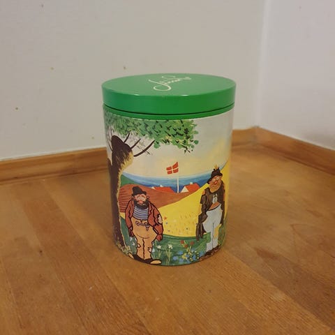 Storm P dåse i metal.H 15 cm, Dia 11 cm.Fin brugt stand, gå til varen, for flere billeder.(Reol 14).