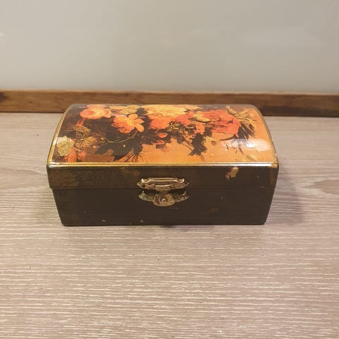 Vintage æske til handsker.H 6 cm, B 26 cm, D 9 cm.Gå til varen, for flere billeder.