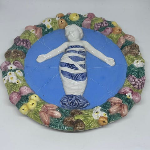 Relief fra Baro, Knabstrup.H 36 cm, B 30 cm.Har lidt små hakker, gå til varen, for flere billeder.(Reol 16).