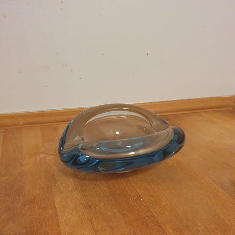 Askebæger i blåt glas fra Holmegaard.H 6 cm, B 16 cm, D 14 cm.Flot og velholdt, gå til varen, for flere billeder.(Reol 15).