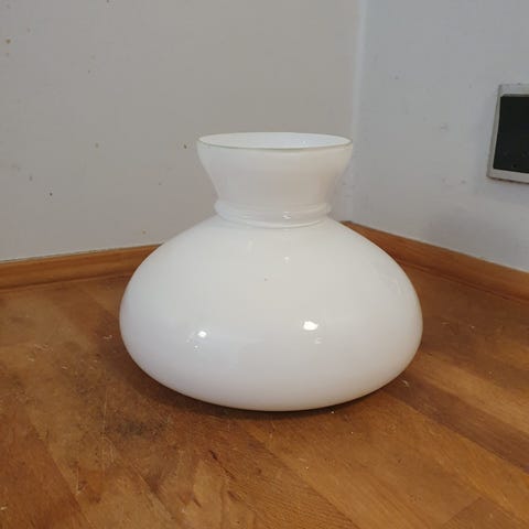 Lampeskærm i hvidt glas.H 24 cm, Dia 25 cm.Har 2 stk på lager, prisen er stykket. Gå til varen, for flere billeder.(Reol 8).