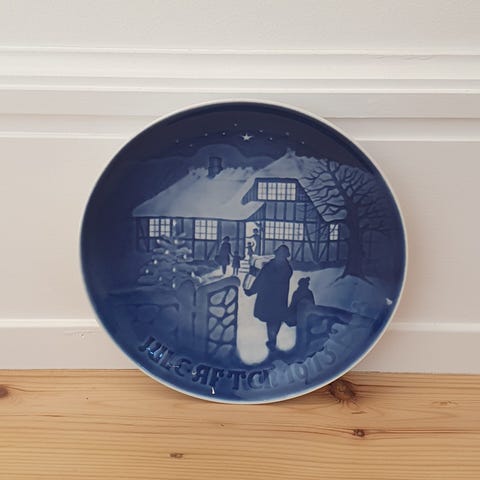Juleaften 1974 platte, Bing & Grøndahl.Landsby idyl.Dia 18 cm.Flot og velholdt, uden skår. Gå til varen, for flere billeder.