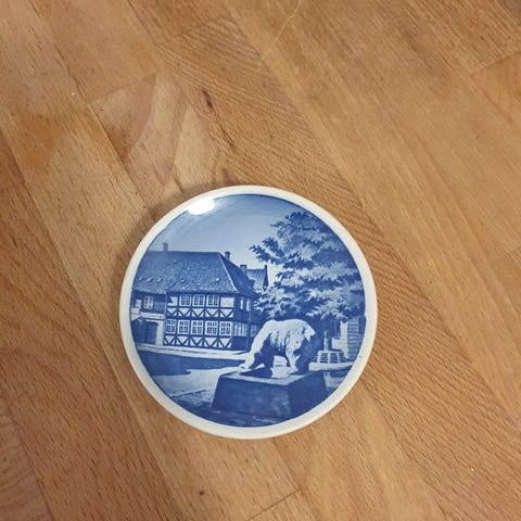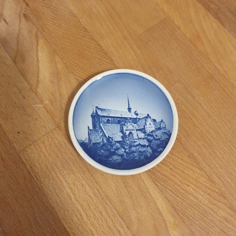 Østerlars Kirke platte.Dia 8,5 cm.Flot og velholdt, uden skår. Gå til varen, for flere billeder.(Reol 15).