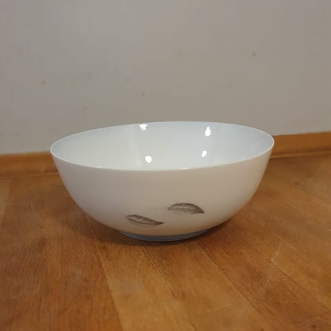 Skål fra Bing & Grøndahl, Løvfald.H 7 cm, B 22 cm.1. sortering.Nr 230.Fremstår med brugsspor i bund, gå til varen, for flere billeder.(Reol 15).