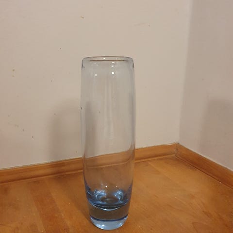 Holmegaard vase i klart glas.H 16 cm, Dia 3 cm.Uden skår eller revner, gå til varen, for flere billeder.(Reol 14).