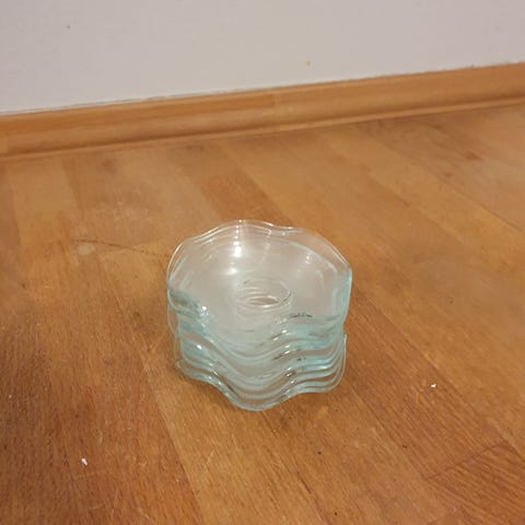 6 vintage lysemanchetter i glas.Dia 7 cm.Alle velholdte, uden skår. Sælges samlet. Gå til varen, for flere billeder.(Reol 15).
