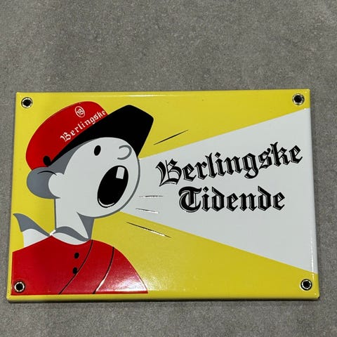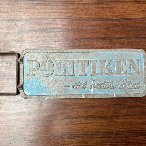 Politiken/Ekstra Bladet skilt i plast.H 26 cm, B 38 cm.Gå til varen, for flere billeder.(Reol 15).