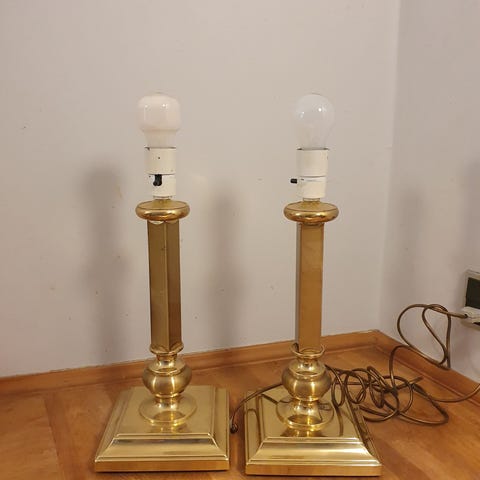 Vintage bordlampe i messing.H 58 cm i alt, B i bunden 13 cm.Fremstår med patina, gå til varen, for flere billeder.(Reol 15).