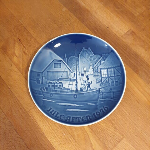 Juleaften platte 1975, Bing & Grøndahl.Dia 18 cm.Flot og velholdt, uden skår eller revner. Gå til varen, for flere billeder.(Reol 14).