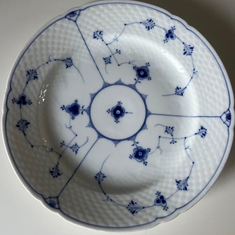 Kgl. Royal Copenhagen og B & G - blåmalet - musselmalet - blå blomst - blå tone - mågestel - ROSELIL - hvid kantet / Henriette - Elsa - og mange andre ting.