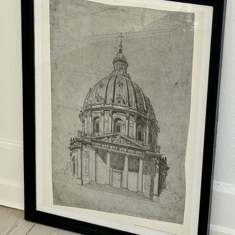 Indrammet tryk - Bredegade ved Marmorkirken.H 12 cm, B 17 cm.Gå til varen, for flere billeder.(Reol 4).