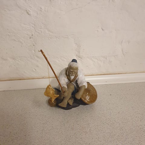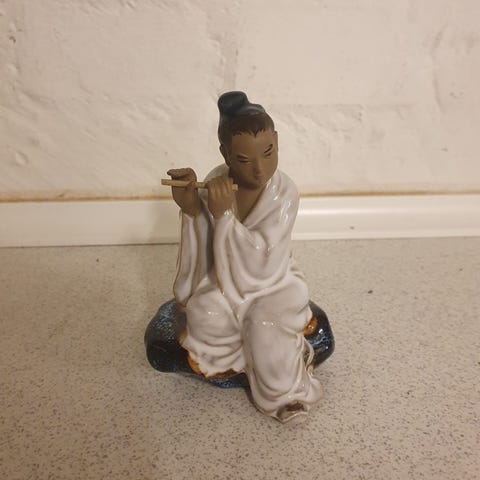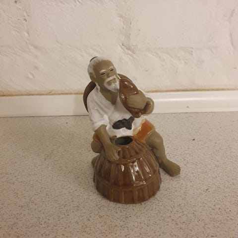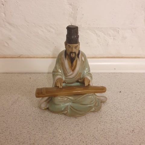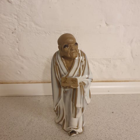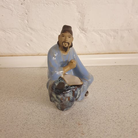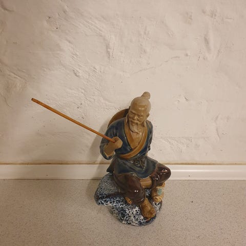 Kinesisk figur i keramik.H 12 cm, B 11 cm.Flot og velholdt, uden skår. Gå til varen, for flere billeder.(Reol 15).