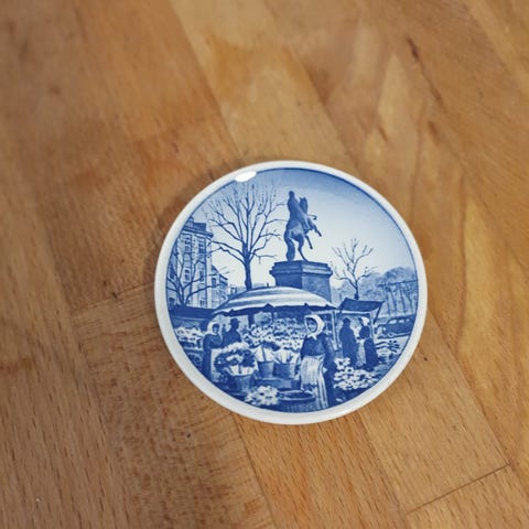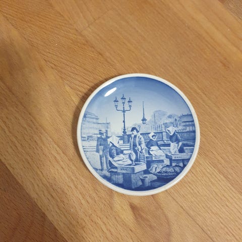 Blomstertorvet platte.Dia 8,5 cm.Flot og velholdt, uden skår. Gå til varen, for flere billeder.(Reol 15).