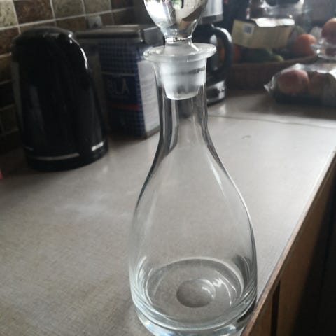 Karaffel med slibninger.H 18 cm.Flot og velholdt, uden skår. Gå til varen, for flere billeder.(Reol 12).