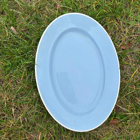 Blåt Sonja fad i aluminia.L 32,5 cm, D 23,5 cm.Har et lille nag, gå til varen, for flere billeder.
