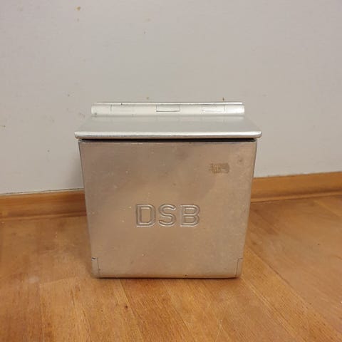 DSB askebæger fra 70'erne.H 9 cm, B 8 cm, D 6 cm.Flot og velholdt, gå til varen, for flere billeder.(Reol 10).