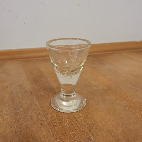 Vintage glas med slibninger.H 13 cm, Dia 9 cm.Flot og velholdt, uden skår. Gå til varen, for flere billeder.