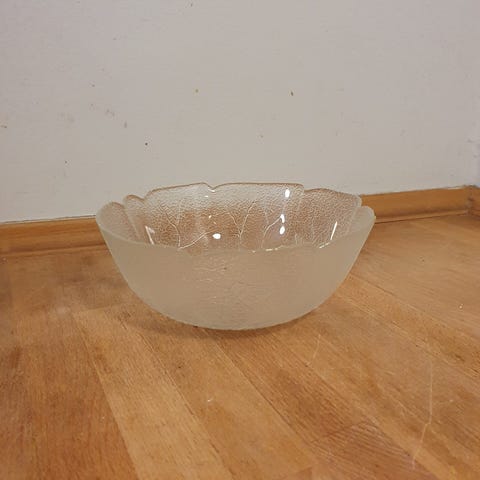 Retro bladskål i glas.H 9 cm, Dia 25 cm.Flot og velholdt, gå til varen, for flere billeder.(Reol 14).