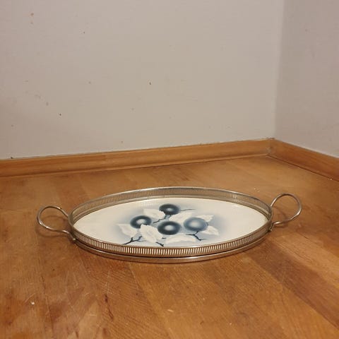Fad i metal med mønstre.D 40 cm, B 50 cm.Flot og velholdt, gå til varen, for flere billeder.
