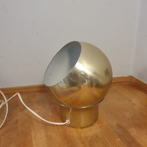 Sølvfarvet kuglelampe i metal - kan pudses op.H 19 cm, Dia 15 cm.Gå til varen, for flere billeder.(Reol 15).