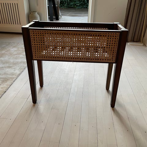 Blomsterkasse i metal og glas.H 52 cm, B 73 cm, D 22,5 cm.Flot og velholdt, gå til varen, for flere billeder. Sendes ikke, afhentes på Nørrebro.(L).