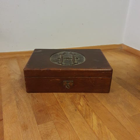 Vintage æske med lynlås.H 5 cm, B 11 cm, D 9 cm.Gå til varen, for flere billeder.(Reol 10).