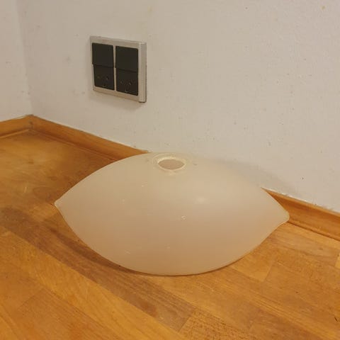 Lampeskærm i matteret glas.H 12 cm, B 28 cm, D 11,5 cm.Flot og velholdt, uden skår. Gå til varen, for flere billeder.(Reol 8).