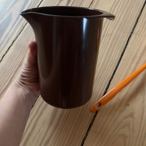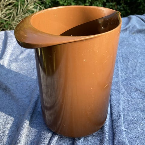 Orange Rosti kande.H 16,5 cm, B 16 cm, D 10,5 cm.Gå til varen, for flere billeder.(Reol 4).