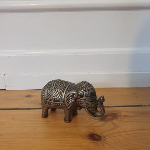 Vintage elefant i træ.H 19 cm, B 34 cm.Flot og velholdt, gå til varen, for flere billeder.(Reol 3).