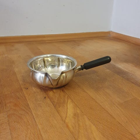 Opøser i pletsølv.L 16 cm, Dia 8,5 cm.Gå til varen, for flere billeder.(Pletsølv 1).