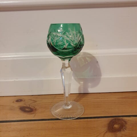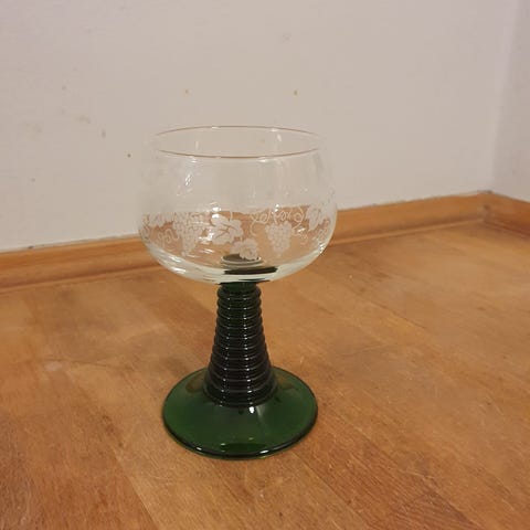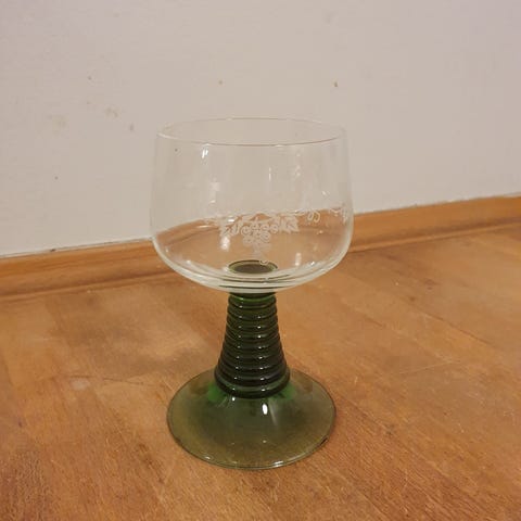 Farvet Römer glas.H 18 cm, Dia 6 cm.Har 5 stk på lager, alle velholdte, uden skår. Prisen er stykket. Gå til varen, for flere billeder.(Reol 10).