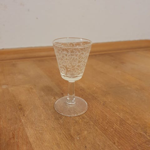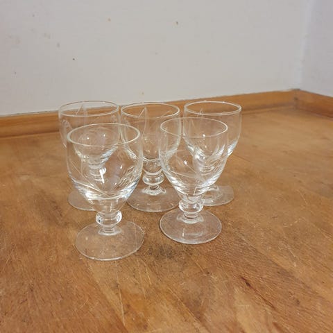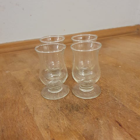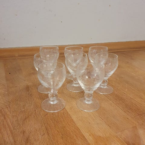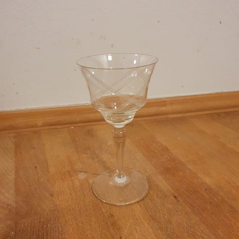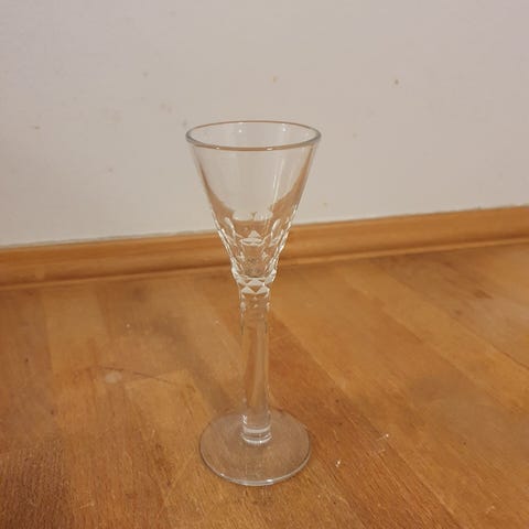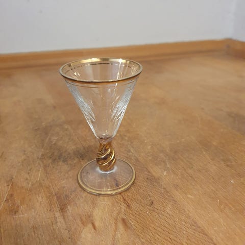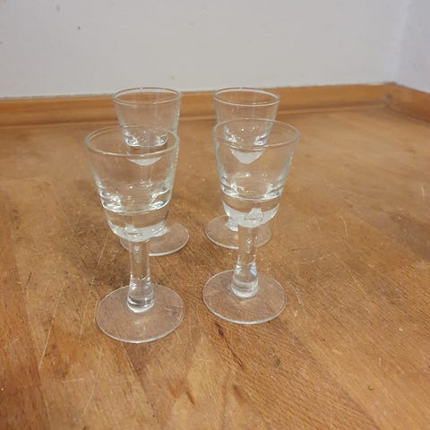 Vintage snapseglas.H 16 cm, Dia 6 cm.Flot og velholdt, uden skår. Gå til varen, for flere billeder.(Reol 11).