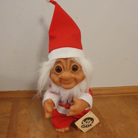 Dam juletrold.H 26 cm.Velholdt, trods alder. Gå til varen, for flere billeder.(Reol 6).