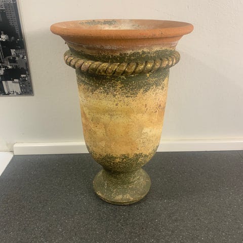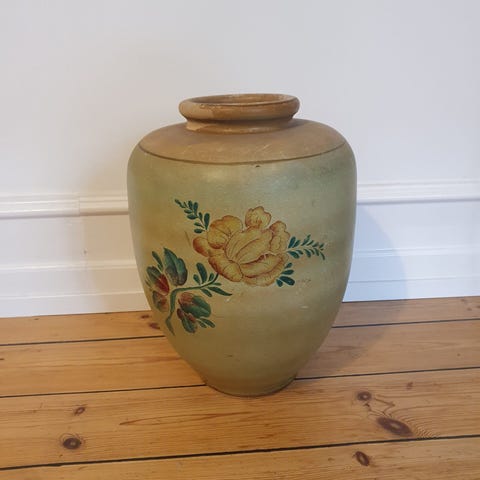 Krukke med hvid kant.H 8,5 cm, Dia 18,5 cm.Flot og velholdt, gå til varen, for flere billeder.(Reol 9).