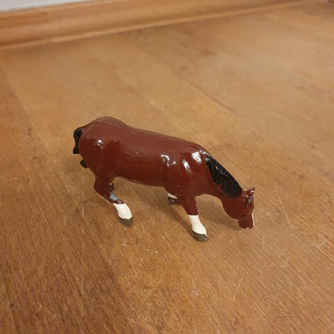 Rytter på hest i metal.H 8 cm, B 11 cm.Gå til varen, for flere billeder.(Reol 6 - fletkurv).