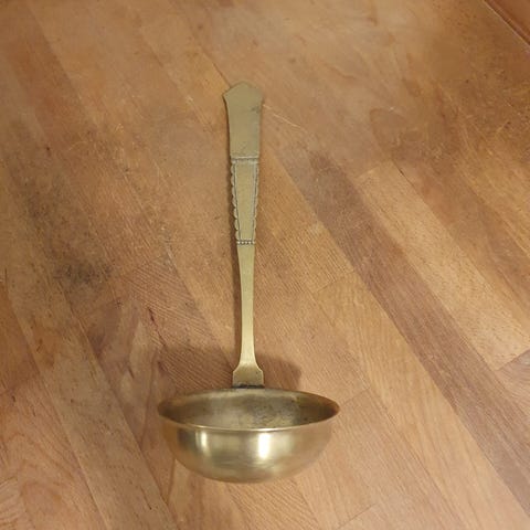 Opøser i træ og tin.L 35 cm.Velholdt, gå til varen, for flere billeder.(Reol 6 - Fletkurv).