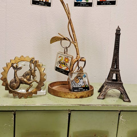 Vintage stjernetegn i glaseret ler, Tyr.H 5,5 cm, B 5,5 cm.Flot og velholdt, gå til varen, for flere billeder.