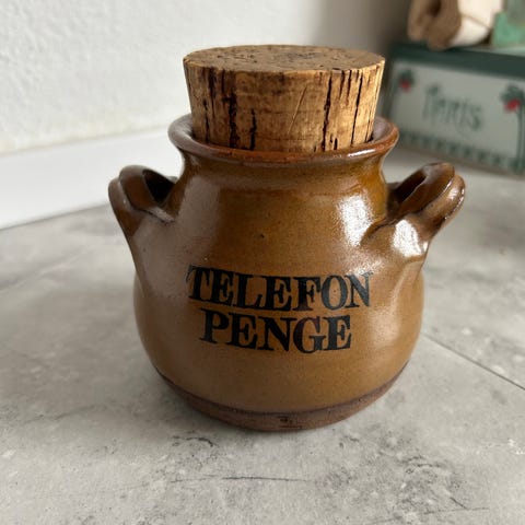 Krukke med låg, Sorte penge.H 10 cm, Dia 10 cm.Flot og velholdt, gå til varen, for flere billeder.(Reol 4).