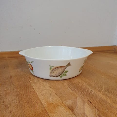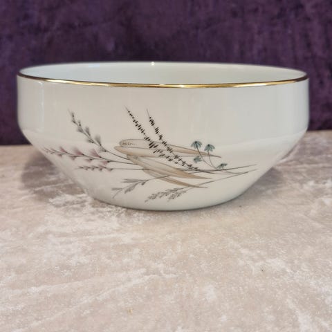 Lyngby skål med guld striber.H 5,5 cm, Dia 18 cm.1. sortering.Flot og velholdt, uden skår. Gå til varen, for flere billeder.