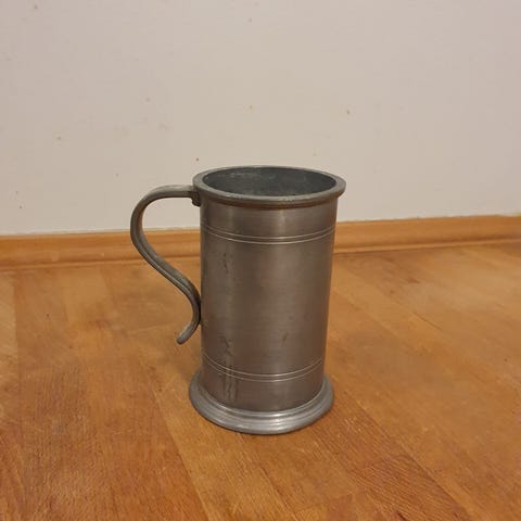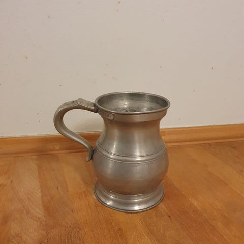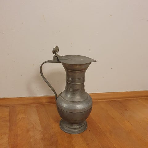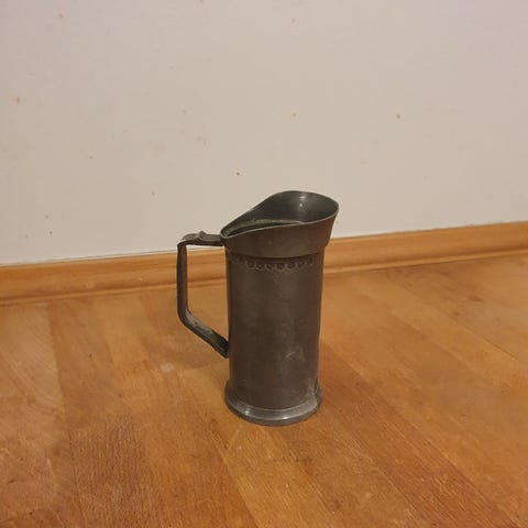 Tin kande, H 20 cm, B 14 cmGå til varen for flere billeder.
