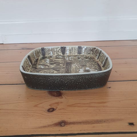Fajance fad, Nils Thorsson.H 3 cm, B 17 cm, D 17 cm.1. sortering.Nr 870/2883.Flot og velholdt, gå til varen, for flere billeder.