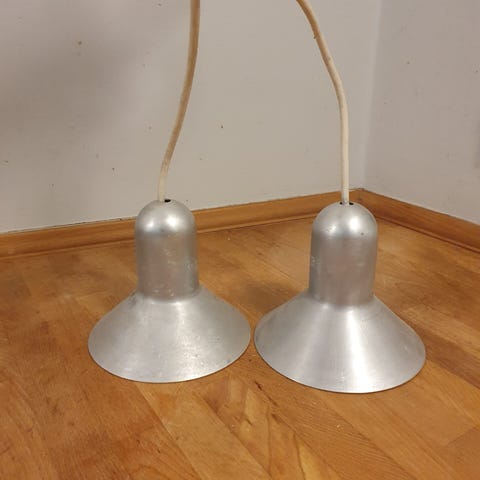 Tre røde retro lamper i metal.L 21,5 cm, Dia 7 cm.Sælges samlet, gå til varen, for flere billeder.(Reol 2).