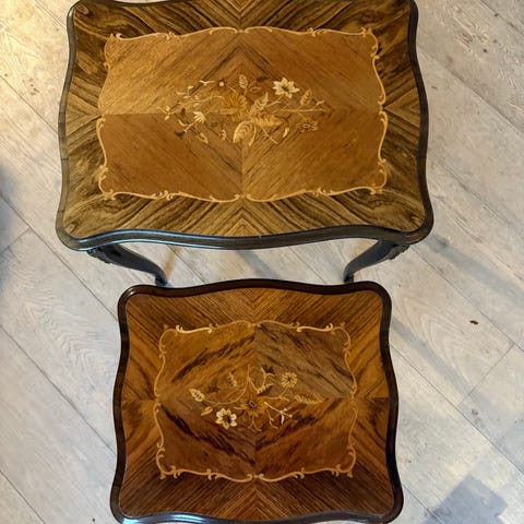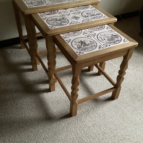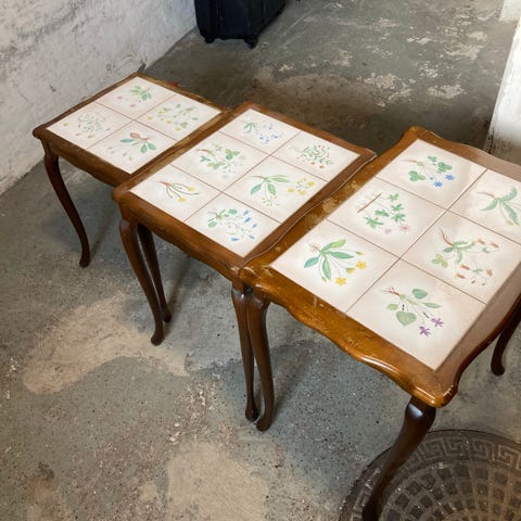 Indskudsborde med fliser.H 48 cm, B 69 cm, D 39 cm.Gå til varen, for flere billeder. Møbler kan afhentes efter aftale, sendes ikke.(N).