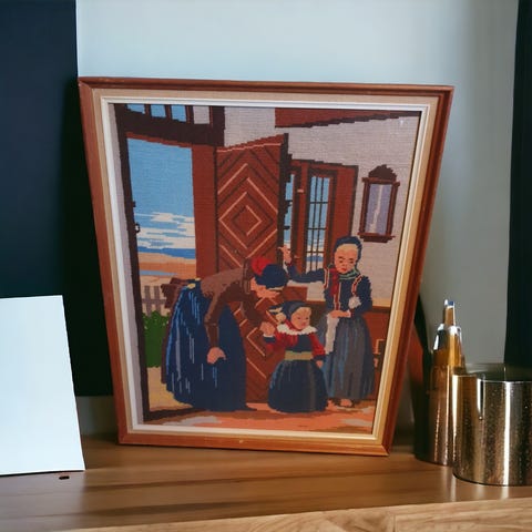 Indrammet broderi af blomst.H 23 cm, B 18 cm.Flot og velholdt.(L).