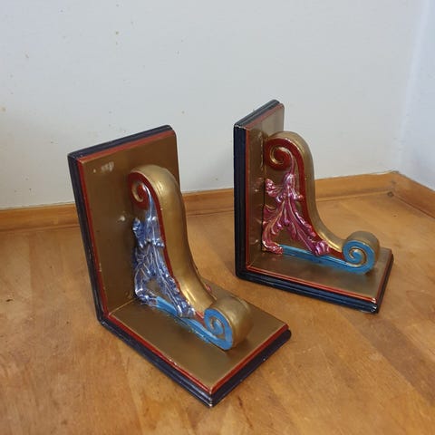 Bogstøtter i massivt træ.H 18 cm, B 19,5 cm.Har 2 stk på lager, prisen er stykket. Begge er velholdte. Gå til varen, for flere billeder.(Reol 2).